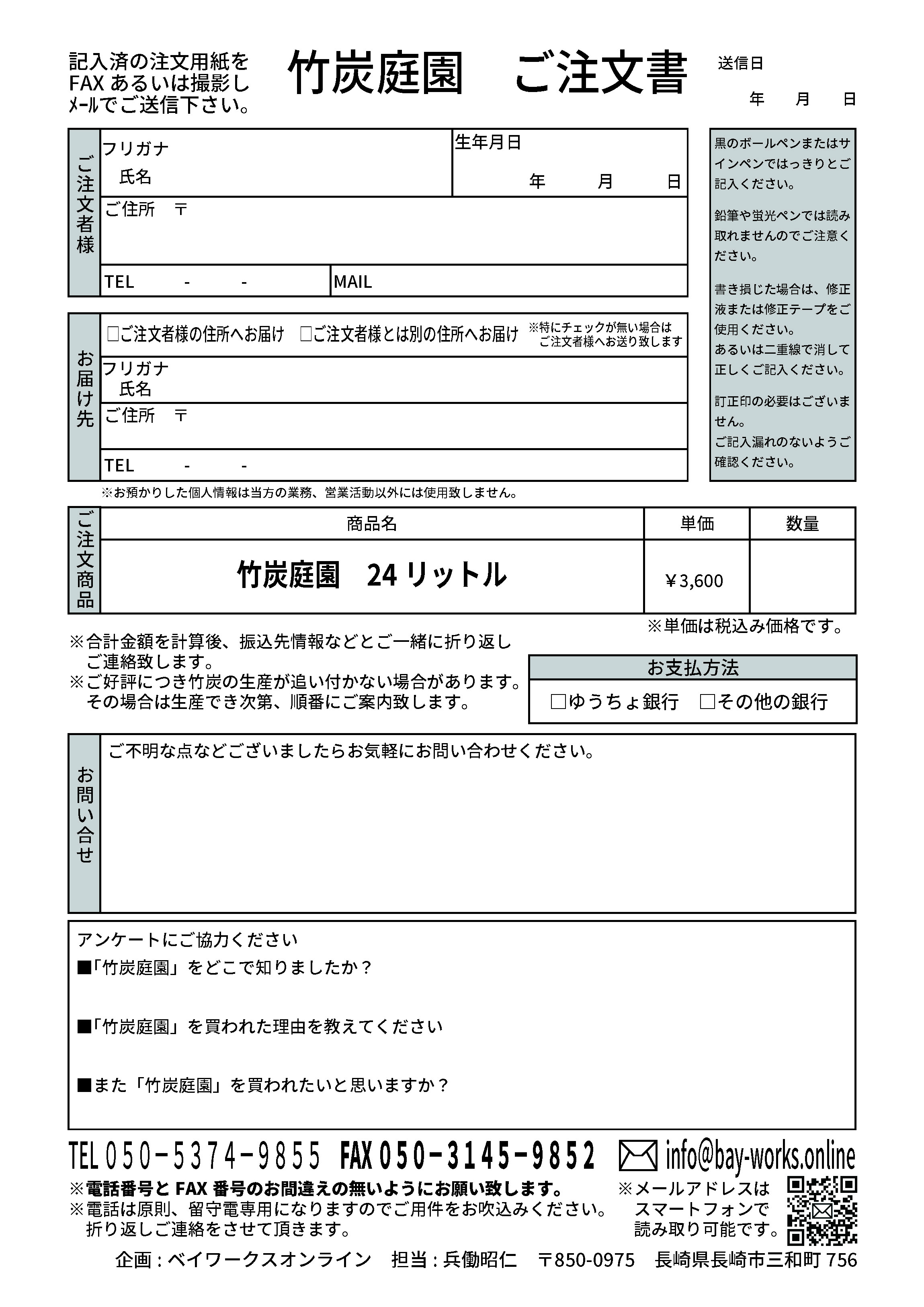 また、造園業・建築業・不動産業など、業務目的でご購入の際は、問い合わせ欄にて「会社名、担当者名」をお知らせください。