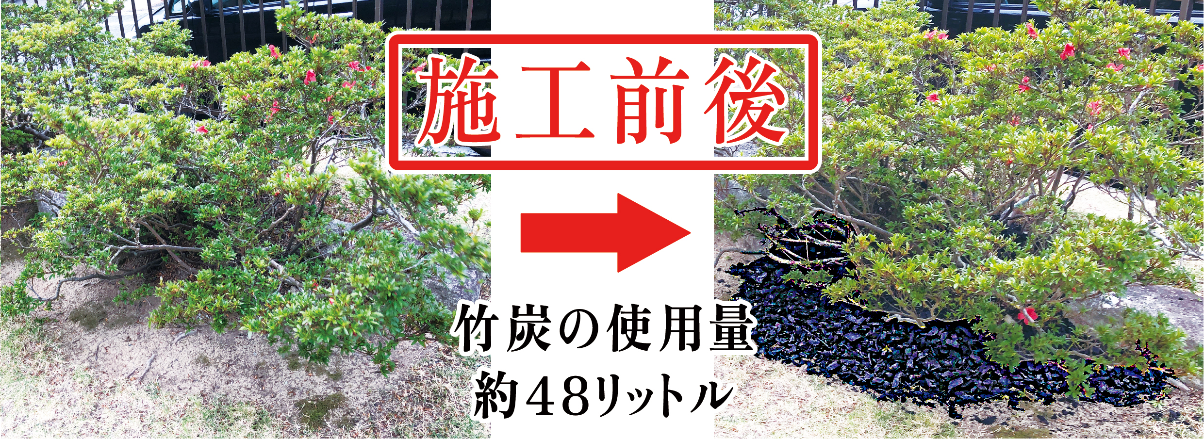 施工は難しいものではなく、庭木の根本や庭石を囲むように竹炭を配置することで完了します。